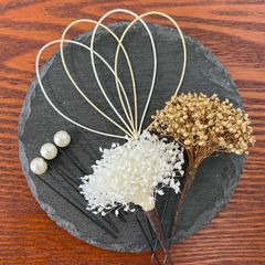 すべてUピン・Iピン仕様なので、お好みの位置に自由にアレンジ可能です。まとめ髪のサイドに寄せたり、散らして付けたりと、ヘアスタイルに合わせてお使いいただけます。