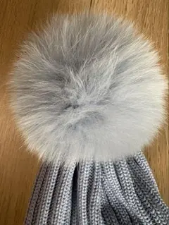 美品✨モンクレール ニット帽 フォックスファー ポンポン ロゴ ワッペン グレー