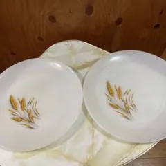 ◆ アンカーホッキング社 ファイヤーキング ホワイトスワール ミルクガラス製ボウル 金縁の波型デザインが特徴のホワイト陶磁器皿5枚セット ◆