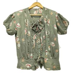 袖と前の重なり部分がポリエステルシフォンになっていて、細かいビーズの縁取りがアクセントになっています。スーツのインナーやワイドパンツ、フレアスカートなどが合わせやすいデザインです。