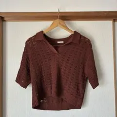 GUジーユーの半袖リブニットセーター、Mサイズですがピッタリした短丈タイプになります。