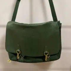 合成皮革製の黒いショルダーバッグ、ファスナー付きポケットあり。