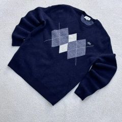 ウール100%のアーガイル柄セーター、スタイリッシュで温かい。