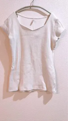 ハートネックTシャツ リブボーダーカットソー 半袖