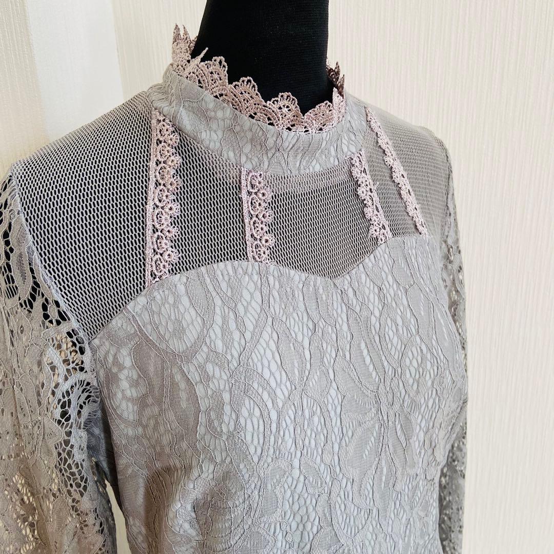 美品✨XL✨LACE LADIES✨レース✨パーティードレス✨グレー✨ハイネック