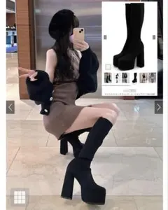 ウルトラストレッチチャンキーヒールロングブーツ [zr1186]