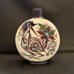 青い花柄の装飾が施された花瓶。独特なシルエットが魅力的。