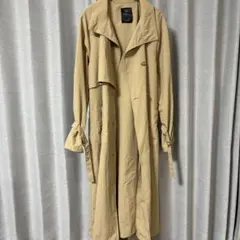 ベージュのトレンチコート、ウエストベルト付きでスタイリッシュ。