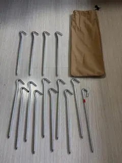 金属製のペグ11本と収納袋が付属。テントやタープの設営に最適。