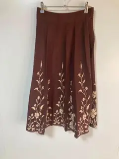 プリズムセゾン フロント プリーツ セミ フレア スカート ミモレ丈 毛100%