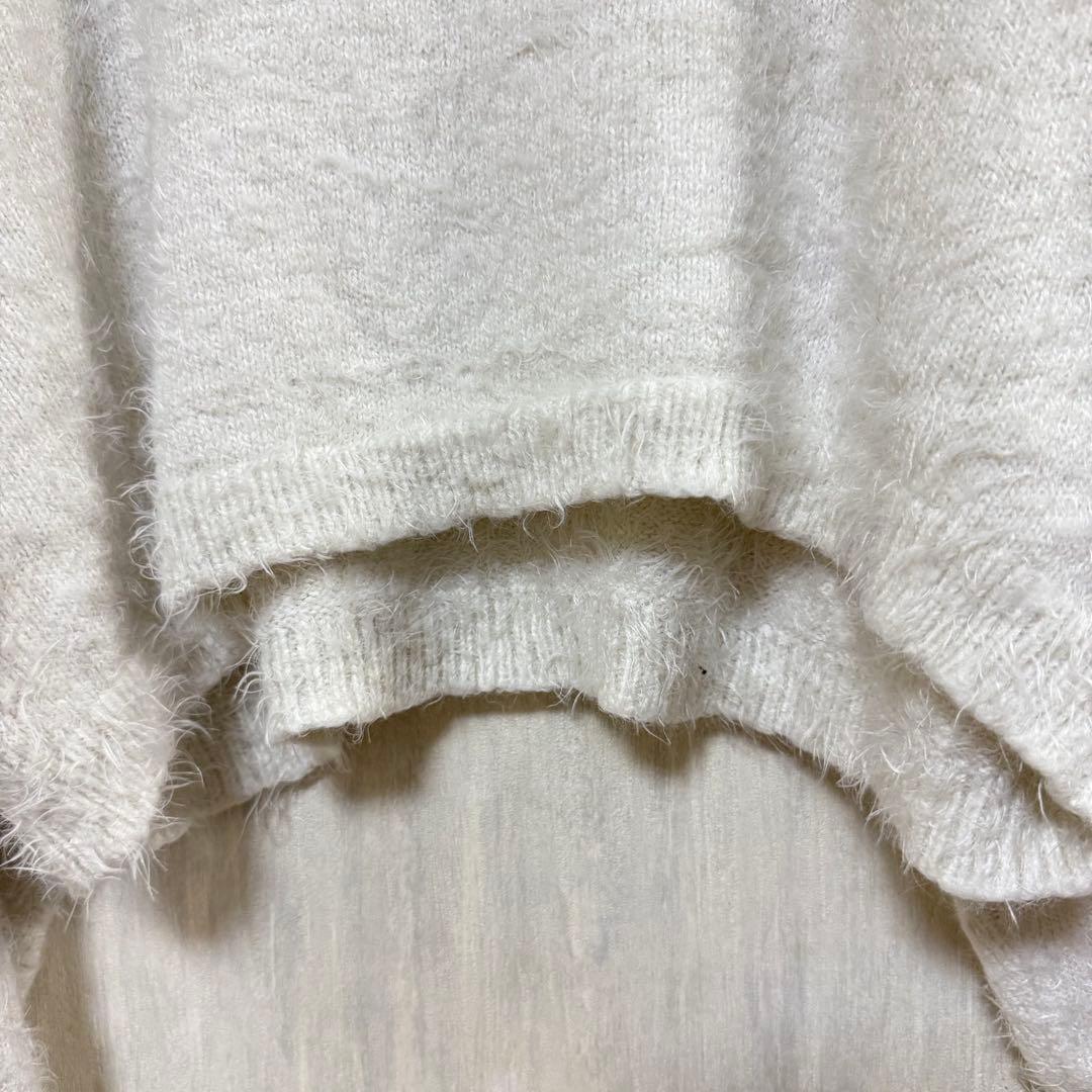 フワフワのホワイトニットクロップドセーター、Sサイズ。