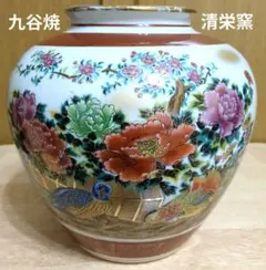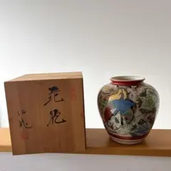 美品 九谷焼 秀山 鴨竹花 金彩 赤絵 花瓶 飾り壷 花器 在銘 時代物