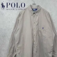 古着 ポロ ラルフローレン 長袖 刺繍ロゴ シャツ ベージュ L 90s