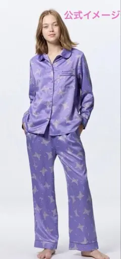 ツヤツヤとしたサテン生地が高見えするパジャマかと思います。