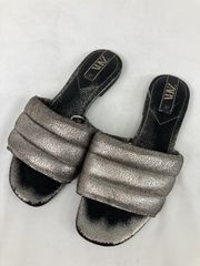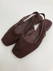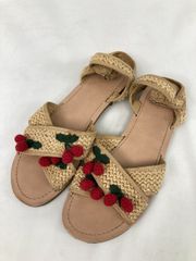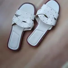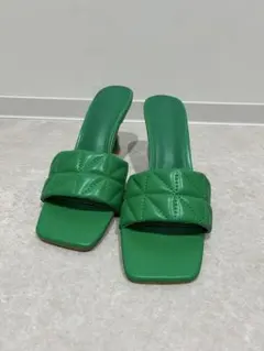 ミントグリーンのフリルストラップが特徴のスクエアトゥサンダル。