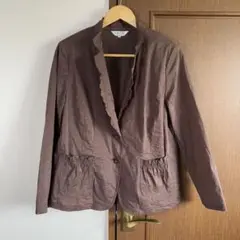 ブラウン系のテーラードジャケット、3つボタンデザインでスタイリッシュ。