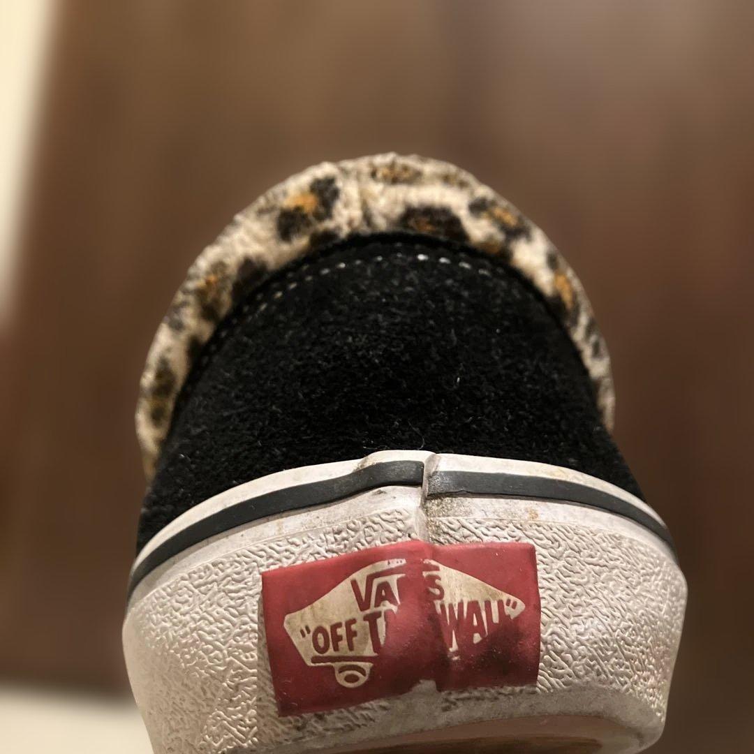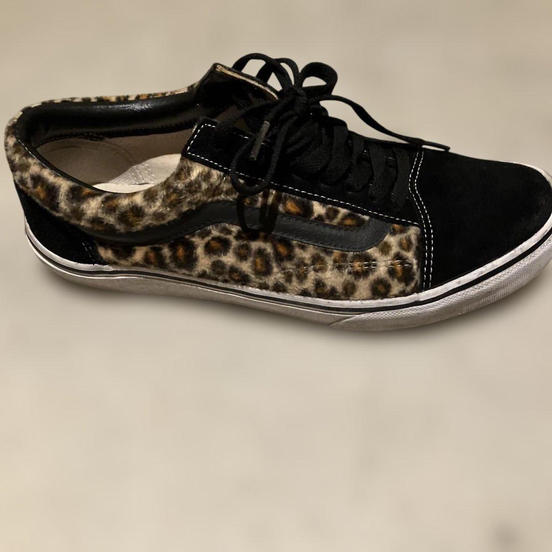 ヒョウ柄とブラックのスエードを使用したローカットスニーカー。