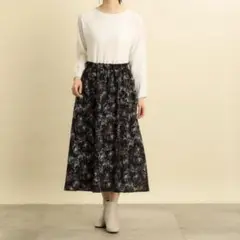 grove 黒の長袖ワンピース サイドペイズリー柄