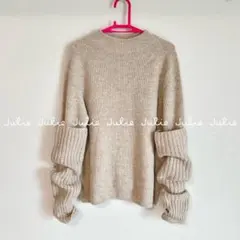 美品 ノーブル ウール カシミヤ ボリューム袖 Vネック プルオーバー イエロー