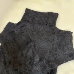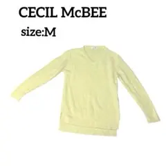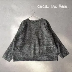 セシルマクビー【M】ハイネックニットセーター ストレッチ ブラック 英字ロゴ 黒