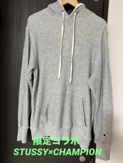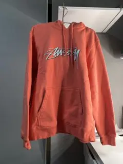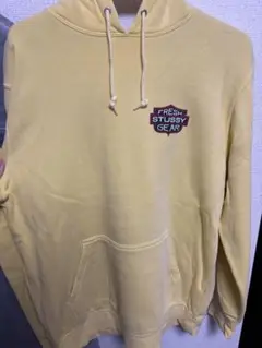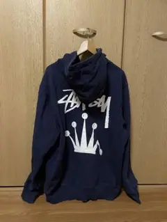 ホワイトのStüssyパーカー、Mサイズ、デザインコープロゴ付き。