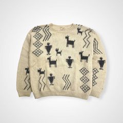 ヴィンテージ エクアドル製 ウールニット 総柄ニット ビンテージ 古着 XL