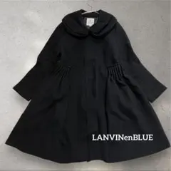 美品 ランバンオンブルー サイドギャザーフレアコート 青サイズ38*HD1322