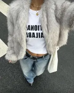 DAZY 女性用 無地 長袖 ショート スタンドカラー フェイクファー ジャケット Y2K レディースコート