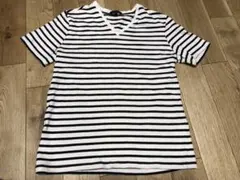 シンプルな紺色のVネック長袖Tシャツ、Mサイズ。