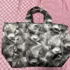 クマの顔がプリントされた大きめトートバッグ、内側はピンク。