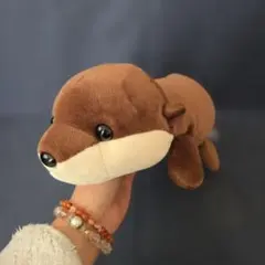 かわいいカワウソのぬいぐるみ、全長のサイズ約12センチで、愛らしい表情が特徴です。