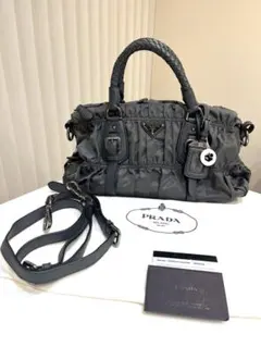 t12【美品】プラダ ロゴ金具 パテントレザーブラック2wayショルダー ハンド