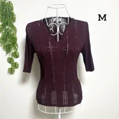 バーガンディ 透かし編み 半袖ニットワンピース チュニック ベスト