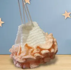 白、ピンク、薄紫色のグラデーションモヘア毛糸を使って巾着を編んでみました*.+゜