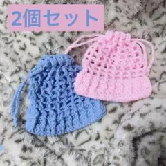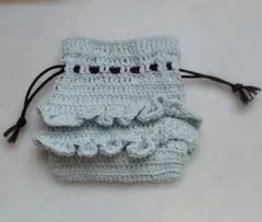バラのポーチ.*・゜ 巾着袋 編み物 かぎ針編み