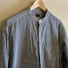 ユニクロ ヒッコリーオーバーサイズスタンドカラーシャツ M
