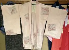 リメイク素材 訪問着 白鶴 波模様 薄いピンク