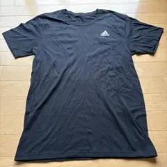 ネイビーのadidasロゴプリントTシャツ、カジュアルスタイルに最適。