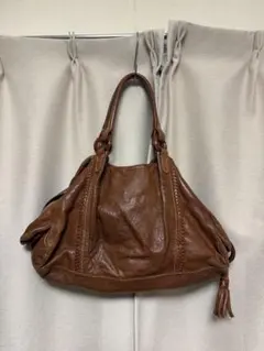 genten ブラウン レザー ハンドバッグ ヌメ革