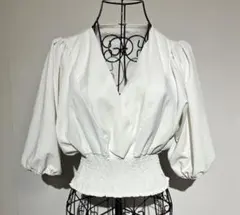 GRL バックリボン ドットブラウス M 黒 パフスリーブ 半袖 美品