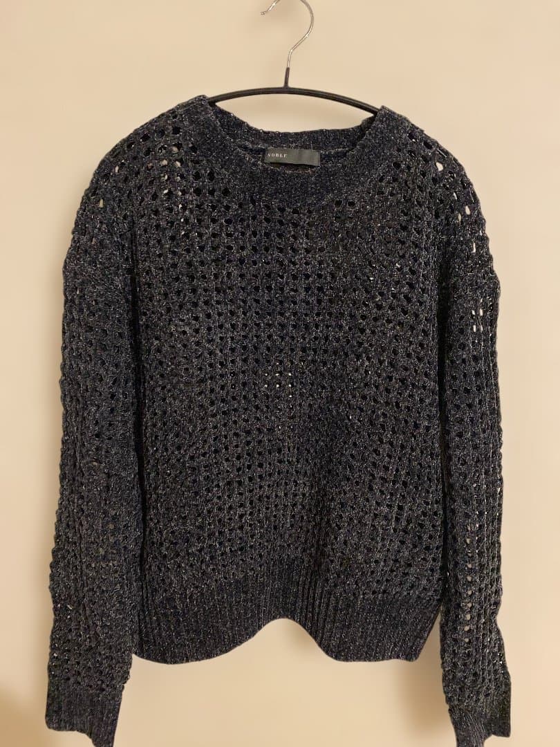 NOBLE 新品同様 ネイビー モールヤーン 透かし編み プルオーバー(ラメ付)