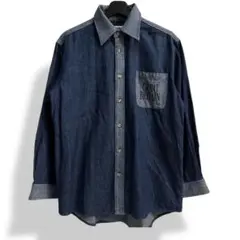 希少 90s レトロ デニムシャツ アニマルアート 雪豹プリント ヴィンテージ