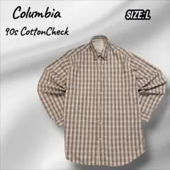 Columbia チェック柄 長袖コットンシャツ Lサイズ レッド系