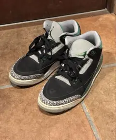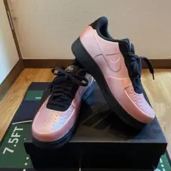 オリーブカラーのNIKEエアフォース1、レザー素材でスタイリッシュ。