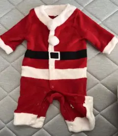 サンタクロースデザインのロンパース、柔らかいポリエステル素材で快適。