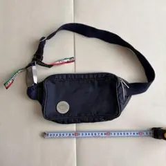 ダークグレーのキャンバス風ボディバッグ、2つのジッパーポケットと調整可能なストラップ付き。