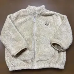 フリース素材のベージュのジップアップアウター、サイズ90cm
