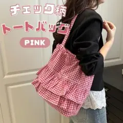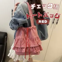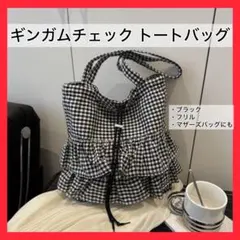 レトロ可愛いトートバッグ ギンガムチェック 水色 ブルー フリル A4 大容量