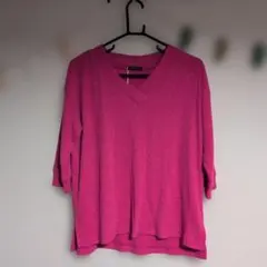 【美品】イング Vネック ドロップショルダー 8分袖 サイドスリット リブニット