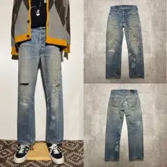 使用感、色落ち、やぶれ、スレ、コキズ、ほつれ、股下にタタキリペア、紙パッチ欠損、ボタンホールにやぶれなどがあります。